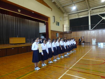 表彰では健康(健康な歯ポスター)、スポーツ(運動部)、文化(英語スピーチ、理科作品展、音楽部)で、改めてたくさんの生徒が活躍したことがわかりました。