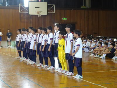 一回戦で岩名中に勝ち、二回戦に進みましたが、接戦で川間中に惜しくも敗れてしまいました。
