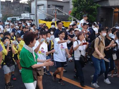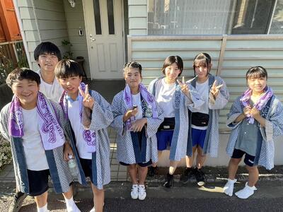 当日は本番で躍るだけでなく「こどもおどりパレード」のボランティアも行い、小学生のサポートもしました。