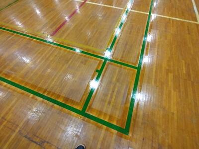 また、バドミントンコートのラインも業者に依頼して、ライン(テープ)を整備しました。
