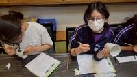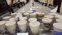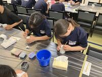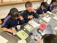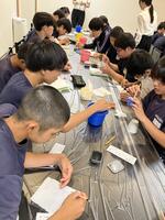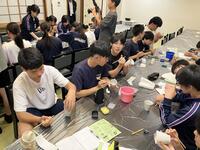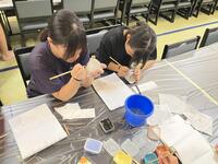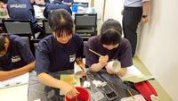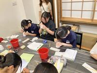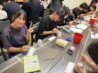 午後6時30分、3組の体験学習、清水焼の絵付け体験が始まりました。