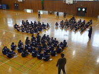 続いて生徒を代表して生徒会長より「励ましの言葉」、「全校応援」、「校歌斉唱」と続きます。