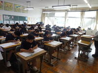 本日は、お暑い中またお忙しい中、1・2年の保護者の皆様にも多く進路保護者会に参加していただき、誠にありがとうございました。1時間の保護者会の中で、たくさんの内容について話があったため、疑問に思われたことが多々あったのではないかと思います。生徒には、これから丁寧に1つ1つ学年・学級にて指導して参ります。保護者の方々におかれましては、些細なことでも疑問や質問がありましたら、生徒を通してても結構ですし、直接担任や学年職員にお尋ねなさって結構ですので、ご連絡いただきますようお願いします。進路指導は、生徒本人・保護者・学年・学校が一体となって進めていくものです。どうかよろしくお願いします。