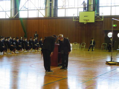 ☆3年生から2年生へ伝統が引き継がれました。新生徒会、期待しています!!