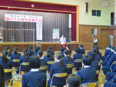 27日(水)5校時に2年生を対象に、野田市消防本部の方々を講師に「応急手当講習会」を実施しました。