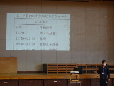 3校時に2年生が林間学校「ホワイトスクール」に向けて学年集会を行いました。