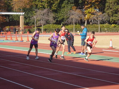 この大会は1・2年生(新人)の大会で、二中からは男子3チーム(A・B・C)、女子3チーム(A・B・C)が出場し、女子Aチームが市民駅伝大会に続き、優勝することができました。