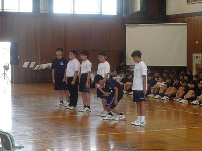 しかし、今年度から「4月から7月までの学校生活を振り返り、称え合い、夏休みもしっかりとした生活を送り、9月からも頑張っていこう。」という思いを形にするために生徒主体の集会に変えることにしました。