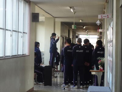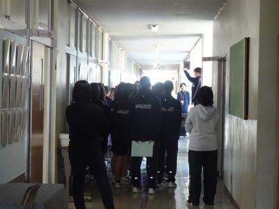廊下での練習は、体育館や音楽室に行くより移動時間が短縮できる分、練習時間にあてられ、また廊下はよく響くので音を取りやすいというメリットがありますね。
