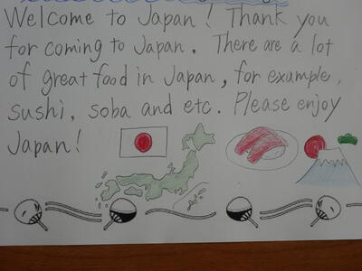 せっかくの国際交流の機会なので、英語学習を活かして、各学年で工夫を凝らして出迎え、交流をしました。