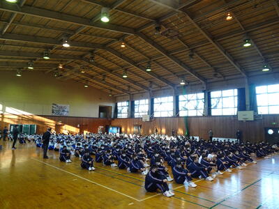 始めに朝の時間を使って、冬休み明けの全校集会を行いました。