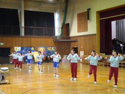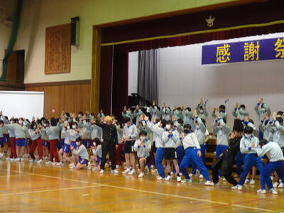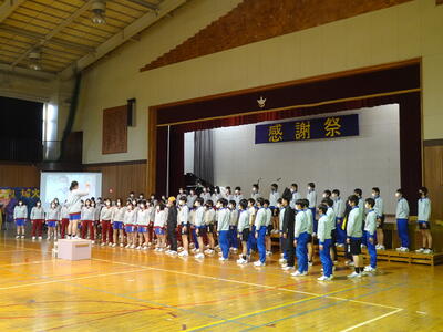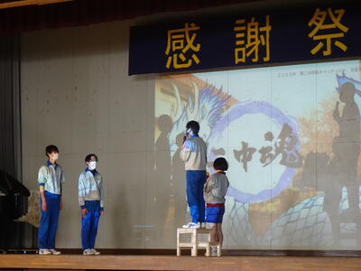 3年生の入場後、1・2年生による「祝いの手打ち」から始まり、1年生の発表、2年生の発表と続きました。