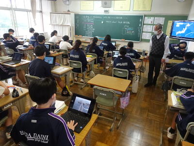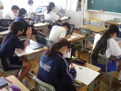 本日、1年生全クラス(1学級ごと)でいじめ防止の授業を外部講師の方に来ていただき行いました。SNSにおける悪口の書き込みに対してどのような選択肢をとるのか。一人一人が自分の意見を持って、正しい行動に移せるか。それは「いじめはよくない」という学級の雰囲気が大切であることを生徒たちも真剣に学んでいました。