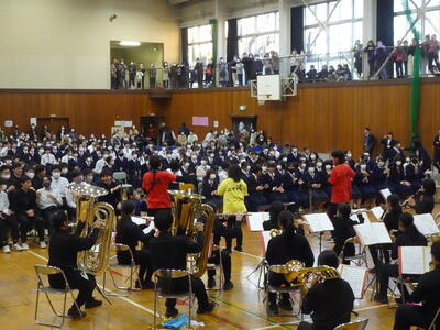 二中音楽部からは、中学生木管部門に「管楽・打楽器八重奏」で出場し「夢への冒険」を演奏しました。
