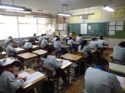 また、校内では毎年、千葉県公立高校の受験日に合わせて行っている1・2年生の定期テスト(1日目)を実施しました。