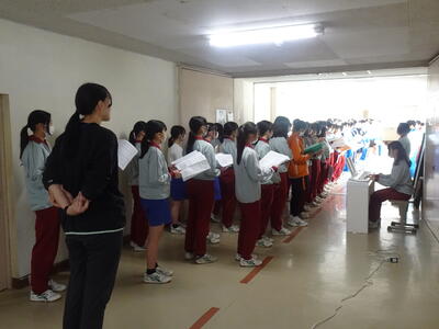 その後は執行部の進行で会は進み「2年生のホワイトスクール報告会」「3年生の進路報告会(受験のアドバイス)」「新応援団の承認式」「校内善行賞の発表」と続きました。