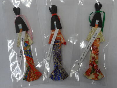 毎年、しおり雛人形をいただいていて、卒業前に3年生ひとり一人に贈呈しています。