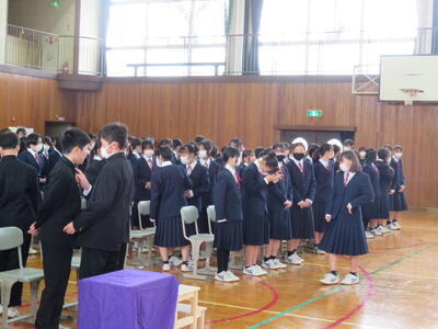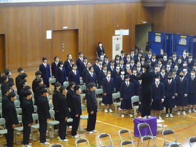 3年生に引き続き、1・2年生も卒業式練習が始まりました。はじめは服装のこと、立ち方、座り方、礼の仕方、拍手の仕方と作法を丁寧に確認しながら練習を行いました。当日、最高の卒業式になるようにこれからも練習を行っていきます。