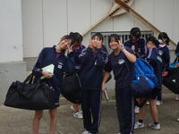まずはじめは、男女に分かれて荷物の点検を行いました。(忘れ物は、なかったでしょうか?)