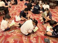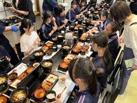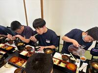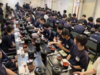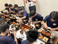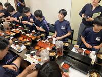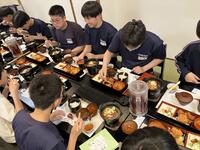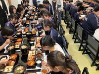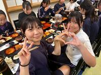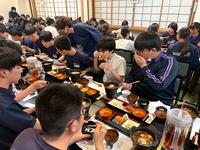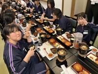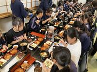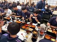 班別行動でたくさん歩いてお腹が減ったのか、みんなご飯をおかわりしています。
