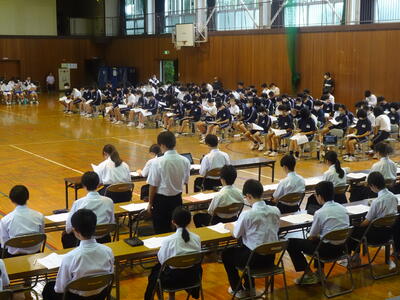 そのため1学年では2週間ほど前に定期テストの大切さや心構え、家庭学習の仕方、テストの受け方などを集会を開いて説明を行いました。