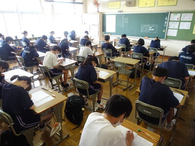 1年生にとっては入学後、初めての定期テストになりましたが、2・3年生と同様に精一杯取り組めたようです。
