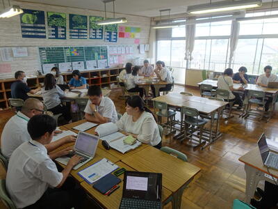 授業後は講師の先生のご指導のもと、先生方で子どもたちに負けない!?活発な意見交換を行いました。