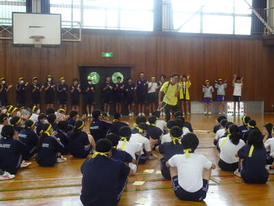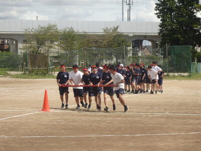 中学校初めての体育祭に臨む1年生は学年団体種目(台風の目!?)の練習を元気に頑張っていました。