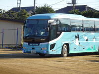 1時間目、荷物と上履きを持ってグラウンドに集まってきます。すると市のバス「あさかぜ号」がやってきました。