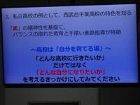開式にあたってまず始めに、西武台千葉高等学校・中学校の校長先生から「今、求められる人間像」についてお話をいただきました。そして続いて副校長先生から、「西武台千葉高校の特徴・特色、取り組んでいること」などの概要について説明をいただきました。