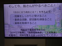講演の最後に、「なぜ、勉強が必要なのか?」、「将来、どんな自分になってみたいか」、「そして、そうなるために今必要な取組は何なのか?」をお話しいただき会が終了しました。