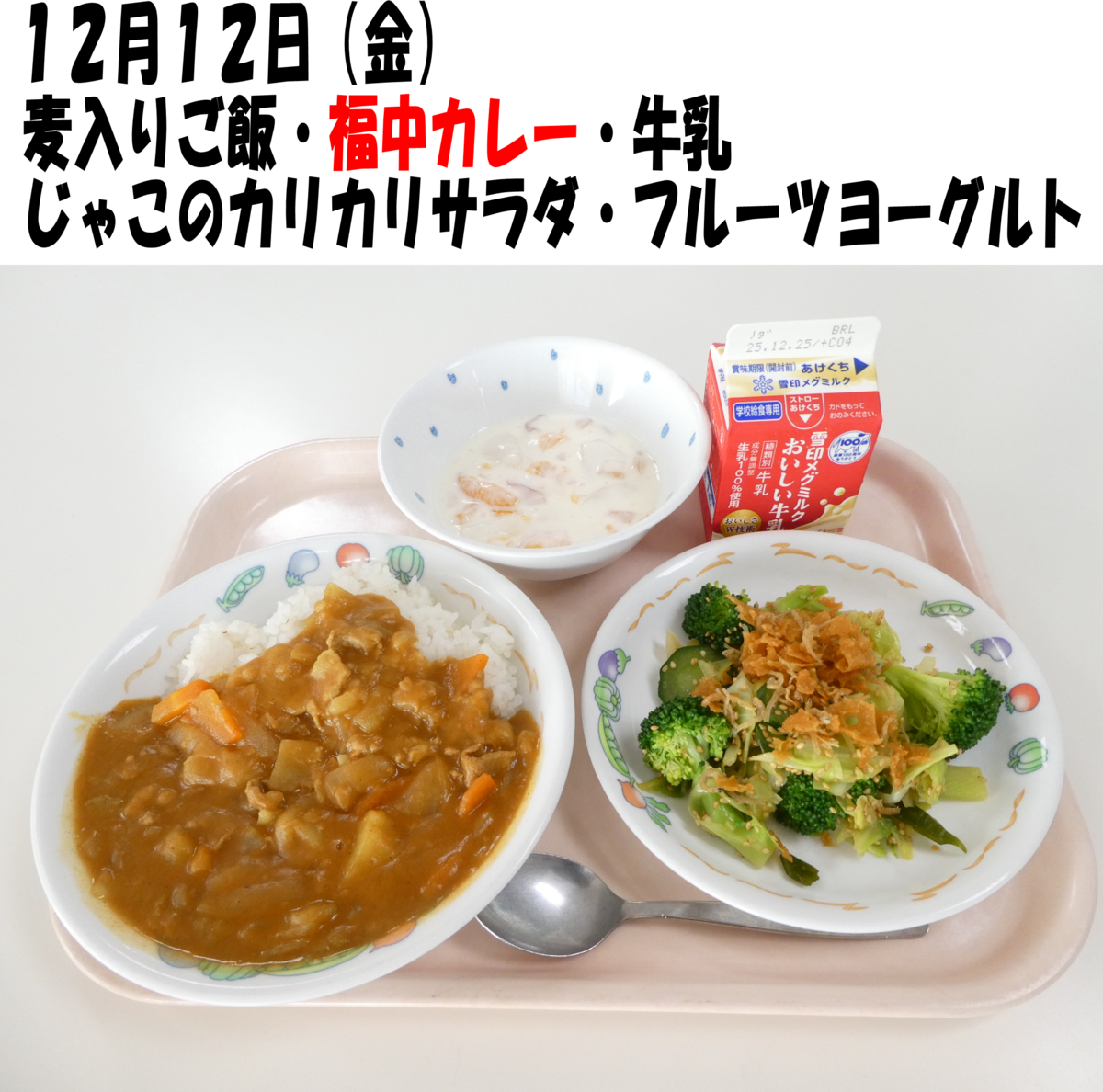 本日は、給食アゲイン献立11月堂々1位定番の「福中カレー」です。
