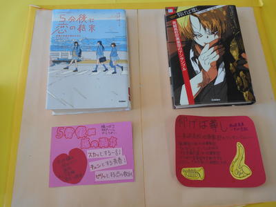 一覧へ 2年生が職場体験に来てくれました!! 投稿日時: 2019/11/20 fukukko 本日、2年生3人が職場体験でPOP作りやいろいろお手伝いしてくれました。 どれも素晴らしいアイディアと出来栄えです! 作ってくれたPOPと本は渡り廊下に展示してあります。 ぜひ借りて読んでくださいね。