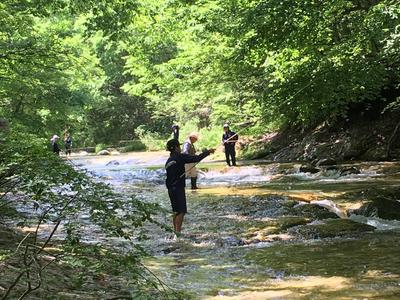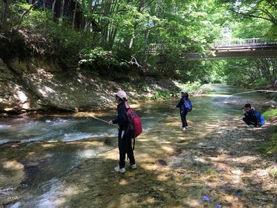 渓流釣りやジップラインなど体験学習を行いました。