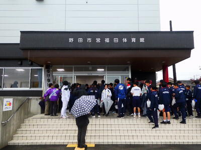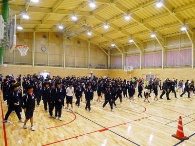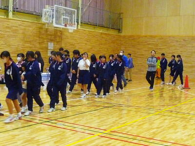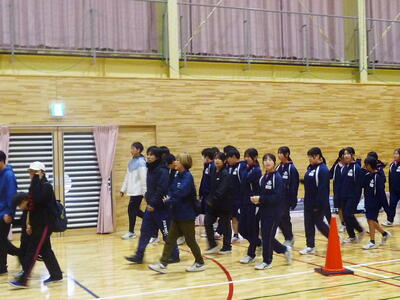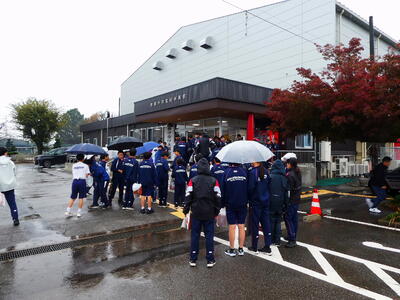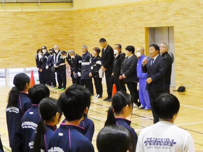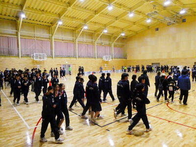 福田地区のみなさん(おじいちゃん・おばあちゃん・お父さん・お母さん・お兄さん・お姉さん・弟くん・妹ちゃん・他)が自分の体力にあったコース(距離)を選んで歩く(中学生は全員8㎞)・・・の予定でしたが、雨天のためリニューアルしたばかりの体育館で開会式とウォーキングを行いました。