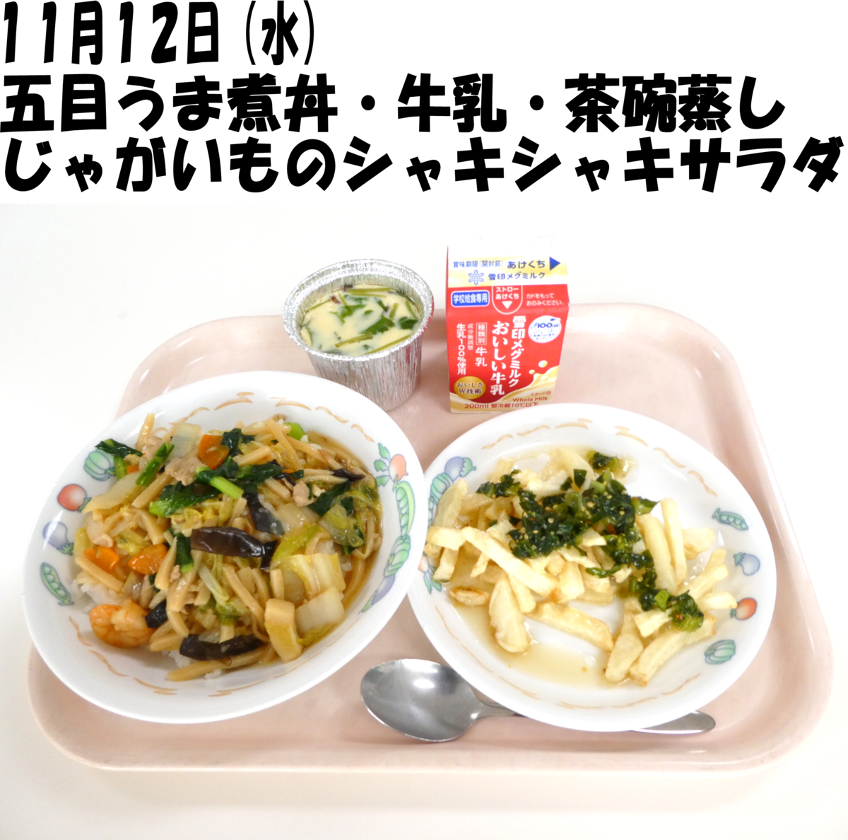 しいたけ、かまぼこなど、いろいろな食材が入っていて、栄養バランスもばっちりです。