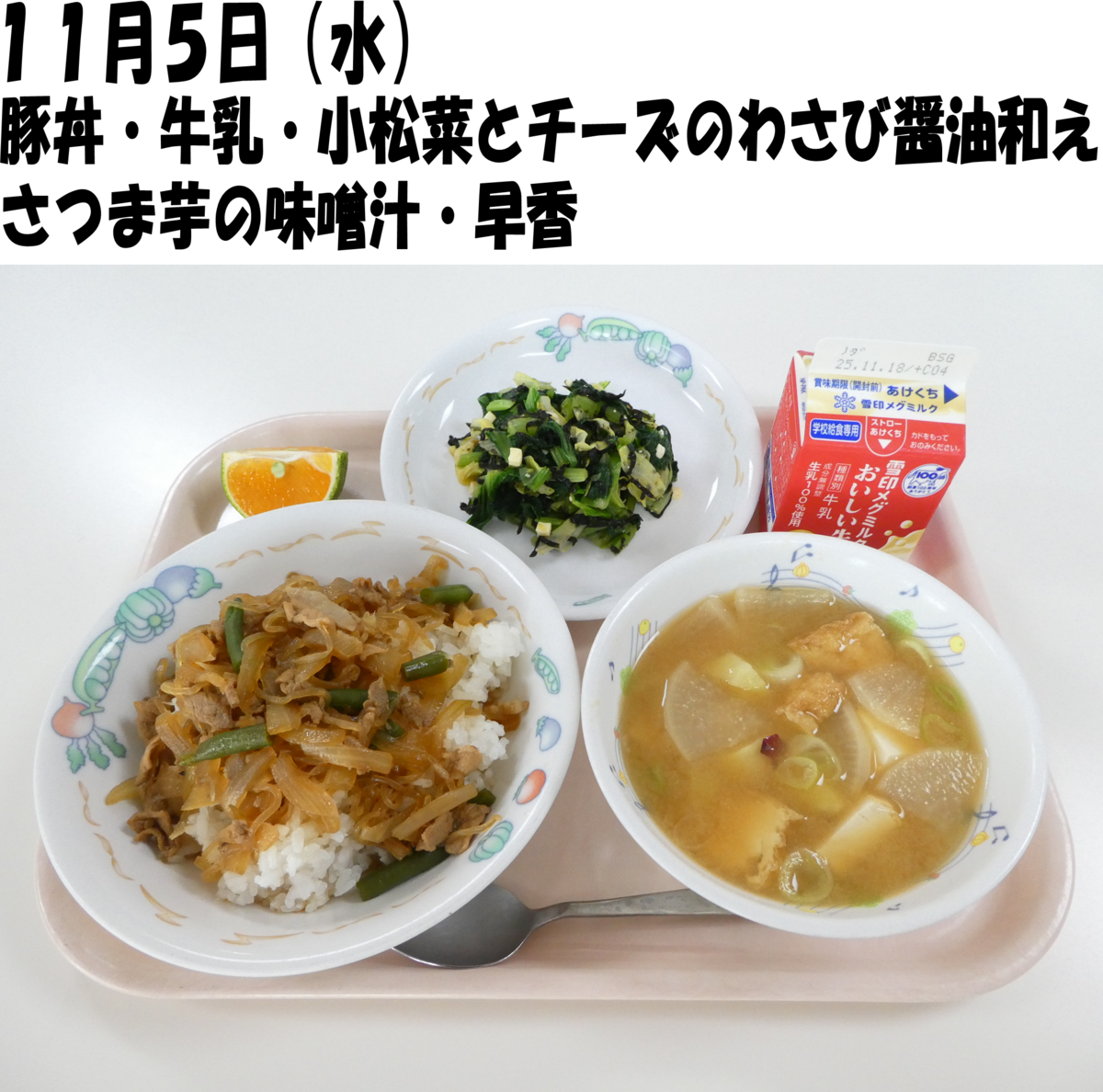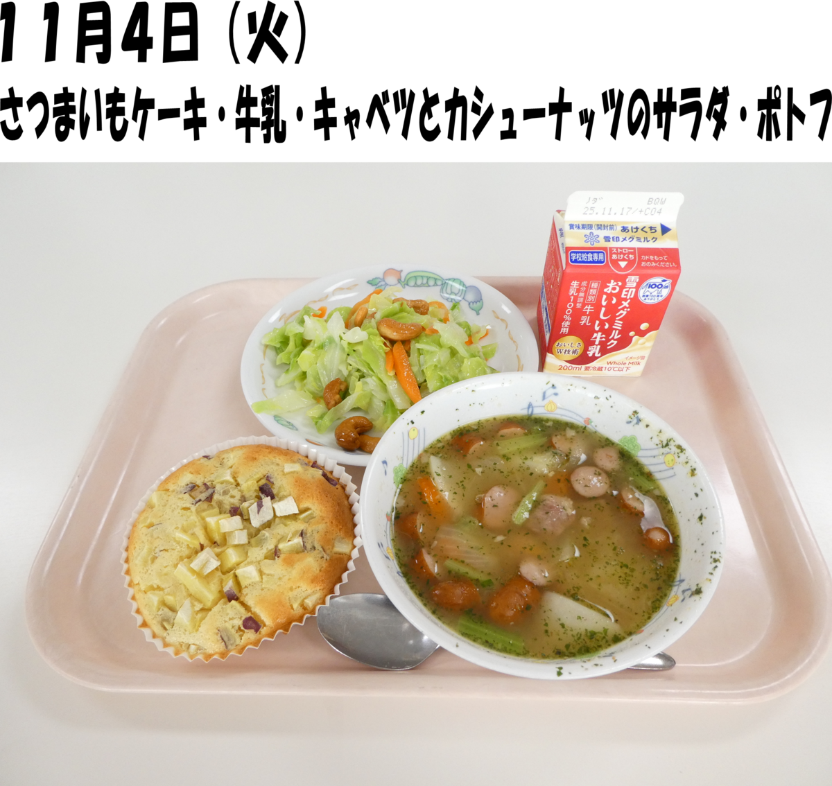 今日のさつまいもケーキのさつまいもは、福田第一小学校の畑で、児童の皆さんが作って収穫したさつまいもです。