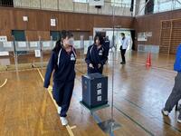 選挙の大切さについて講義していただき、実際に模擬投票を行いました。 実際に代表生徒に、選挙管理委員の仕事や開票作業をしてもらいました。