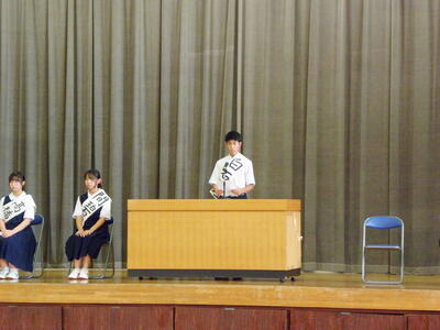 実行委員長から「雰囲気が良くなってきています。校歌をもっと大きな声で歌おう!」