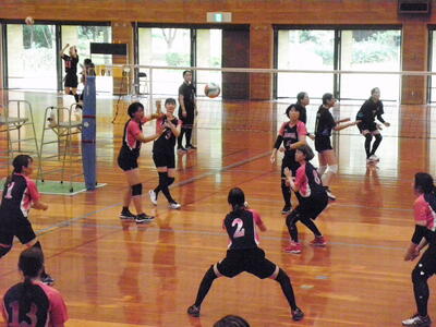 相手のサーブ、アタックをしっかりレシーブし、セッターが左中右と3方向にトスを上げアタックを打ち込みます。