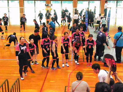 短いハーフタイムで反省・作戦確認を行い、気合を入れなおして第2セットへ。