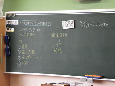 3年生は昨年、ボッチャを体験しているので、今回は「私たちにできることを考えよう」を課題に学習しました。