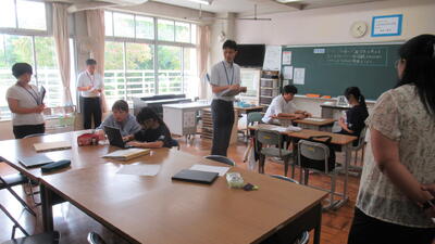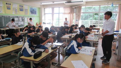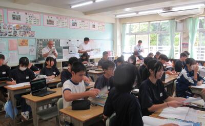 2年生の国語の授業では、生徒がいくつかのグループに分かれ全員が先生として学級内で授業を行いました。