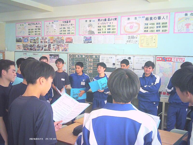 また、帰りの会の時間では、二川祭文化の部で歌う学級曲を選びました。