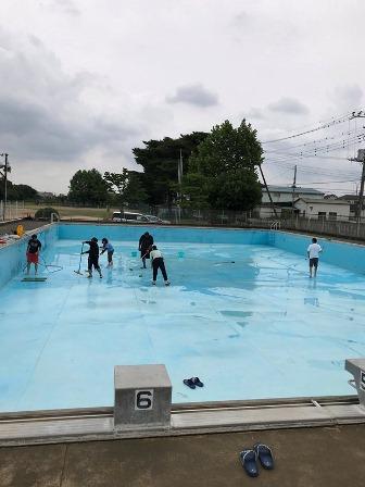 先生方の手でプール掃除です。かなりきれいになりました。
