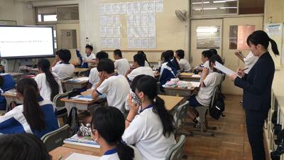 7月1日、研究授業が行われました。教科は外国語科、授業者は今年度本校に着任した渡邉教諭です。