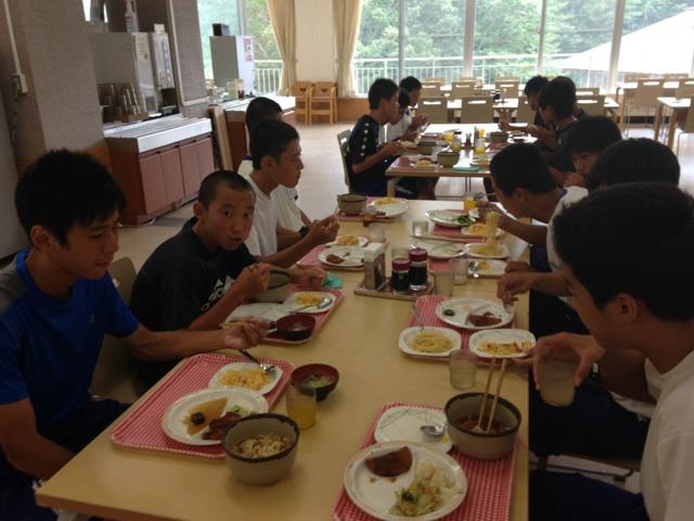 本日は,あいにくの雨の中”キビタキの森”というコースを走りました。男子12000m,女子9000mを走り切り,選手たちもやりきった表情を浮かべていました。夕食には野外炊飯を行いました。普段は行えない貴重な体験ができ,満足そうな顔を浮かべる子も多く見られました。明日は最終日になります。体調管理には十二分に気をつけて行っていきます。