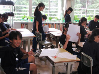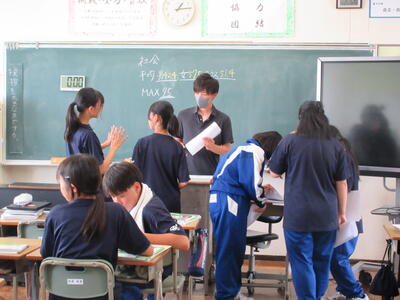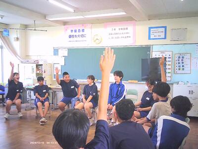 その後の学級の時間では、学級レクを行いました。文化委員や学級委員を中心にレクを企画・運営し全員で楽しむことができました。
