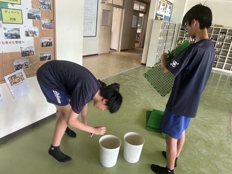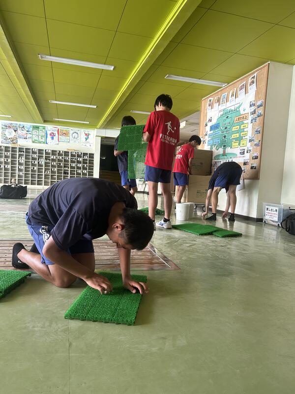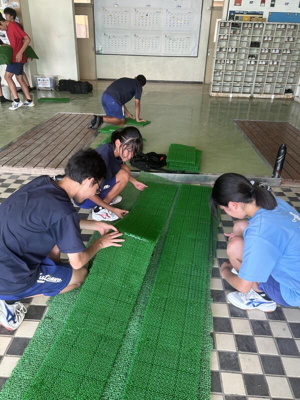9月からの生活に備えて、駅伝部の生徒で昇降口のマットを新調しました。