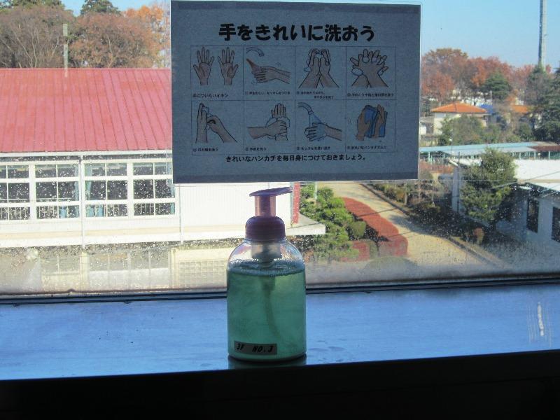 寒くなり,風邪が随分流行りだしてきました。風邪予防はやはり,「手洗い・うがい」が大切です!水道の水も冷たくなり,手を洗うのも嫌な生徒も多くいると思います。12月から流しに泡洗剤を設置しました。これで,しっかりと「手洗い・うがい」を行い,各個人でも風邪の予防に努めましょう。